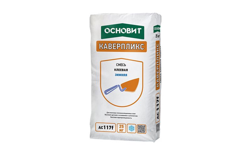 Клеевая смесь ОСНОВИТ КАВЕРПЛИКС AC117 F предназначена для монтажа изоляционных плит на основе пенополистирола и минеральной ваты, а так же для создания “дышащих” систем утепления фасадов как новых, так и старых зданий. Хорошая адгезия к бетону гарантирует надежное крепление плиты к основанию.