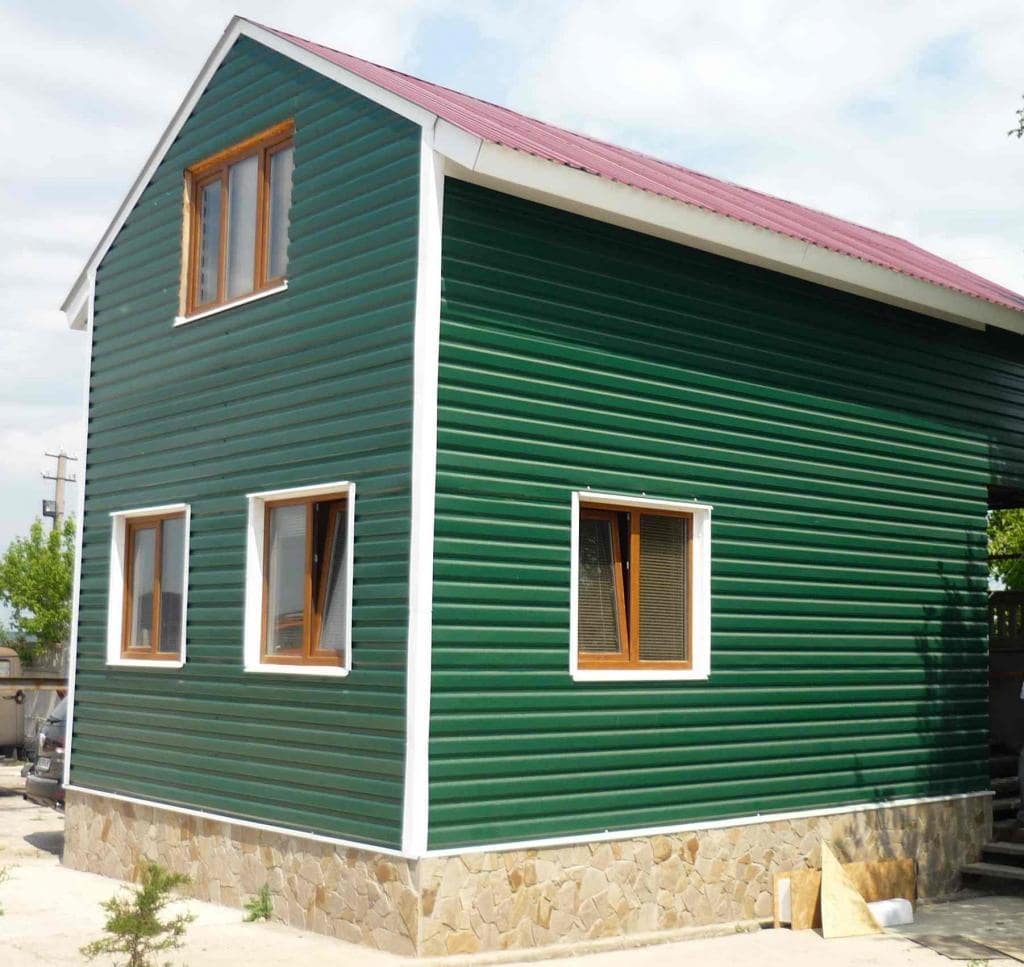 • В отличие от облицовки фасада деревом, металлический сайдинг Корабельная доска прост в монтаже и не требует дополнительного послемонтажного ухода.