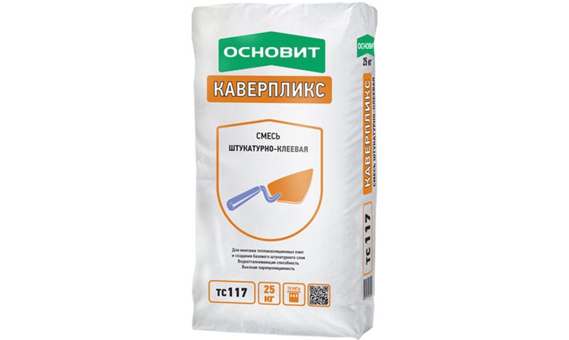 Штукатурно-клеевая смесь ОСНОВИТ КАВЕРПЛИКС TC117 предназначена для монтажа пенополистирольных и минераловатных плит, создания армированного базового штукатурного слоя. Рекомендуется для создания “дышащих” систем утепления фасадов как новых, так и старых зданий. Для внутренних и наружных работ. Водо- и паронепроницаемая.